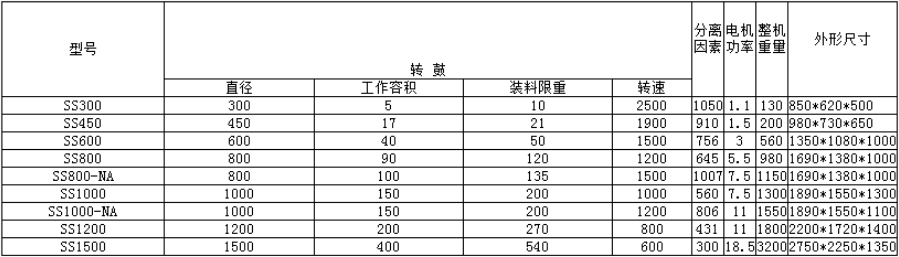 SS型離心機為三足式上部卸料,間歇操作的過濾設備。物料由上部加入轉鼓,在離心力場的作用下,液相穿過過濾介質排出機外,固相物截留在轉鼓內,停機后由人工從上部卸料。SS型離心機具有結構簡單,操作方便,物料不易破碎,通用性強等特點。凡與物料接觸的設備表面光潔,平整,易清洗(或清毒),耐腐蝕,不與藥物發生化學反應或吸附,離心機轉鼓底盤襯包與機殼內外表面均拋光處理,全開大翻蓋,便于出料及維護,蓋上裝有進料管,洗滌管,防爆燈,廣角視鏡,可現場監控整個進料,分離,洗滌過程;所有緊固件均為不銹鋼。SS型為無基礎型,三角底座配重,加有減震器,不需要澆注基礎。